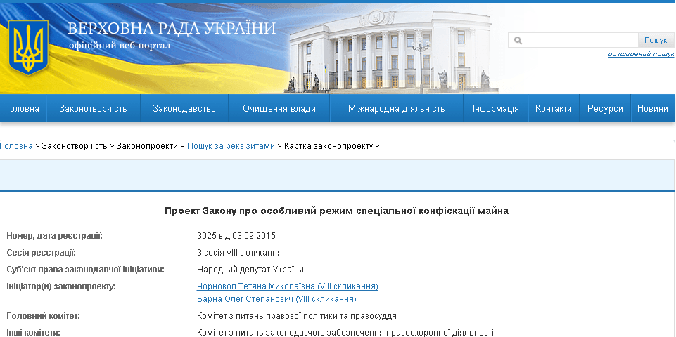 Верхновна Рада буде розглядати законопроект щодо спеціальної конфіскації активів Януковича та його поплічників на користь держави. Законопроект №3025 передбачає простий механізм, який дозволить в стислі строки повернути Україні вкрадені мільярди. Про це написала на своїй сторінці у фейсбуці народна депутатка Тетяна Чорновіл.