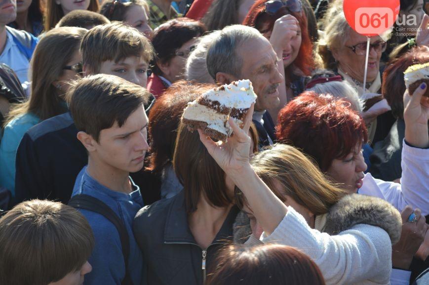 Отримати шматок святкового торта побажало сотні запорожців, навіть міліція не змогла утримати голодний натовп