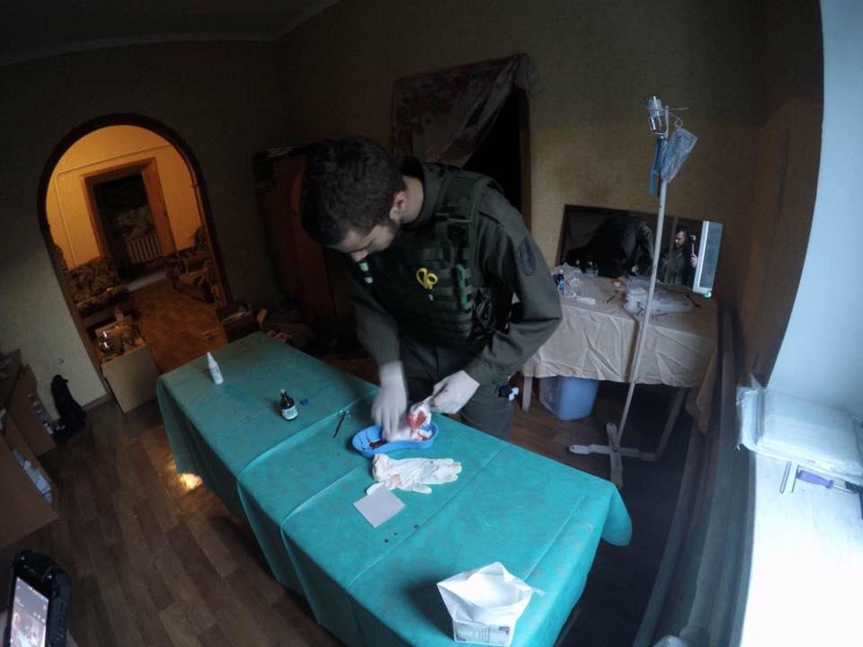 “В чергове надаємо допомогу при невеликих травмах та ушкодженнях на місці ( хоча і доводиться це робити на жаль при різних умовах). На цей раз допомагали травмованому бійцю ЗСУ на Мар’їнці (заодно і похизуююсь який медичний пункт влаштували наші хлопці, звісно ж на крайній позиціях, але як це не шкода через сильний обстріл, — авто та пошкоджений будинок вимушено переїжджаєм)”, — написала волонтерка.