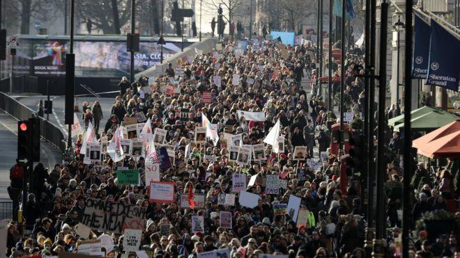 На суботу в інших містах Британії, в тому числі Белфасті, Кардіффі, Единбурзі, Ланкастері і Ліверпулі також заплановані демонстрації на знак солідарності з акцією протесту у Вашингтоні, на яку, за планами організаторів, повинні зібратися до 200 тисяч осіб.