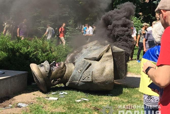 У своїй заяві мер Харкова висловив намір повернути повалений бюст.
