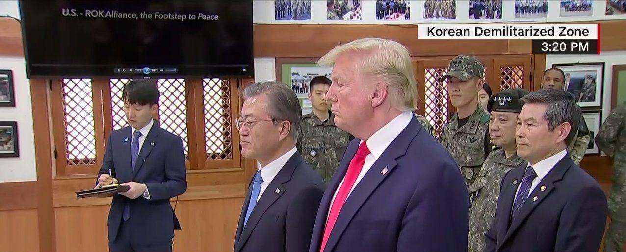 Під час відвідування спостережної вежі Трамп і Мун Чже Ін почули брифінг від американських військових про безпеку на ДМЗ— одній з найбільш мілітаризованих кордонів на Землі.