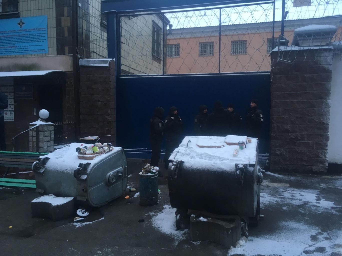 Учасники акції заблокували виїзди із СІЗО з допомогою сміттєвих баків. Натомість спецпризначенці зібрались біля кількох виїздів із СІЗО.