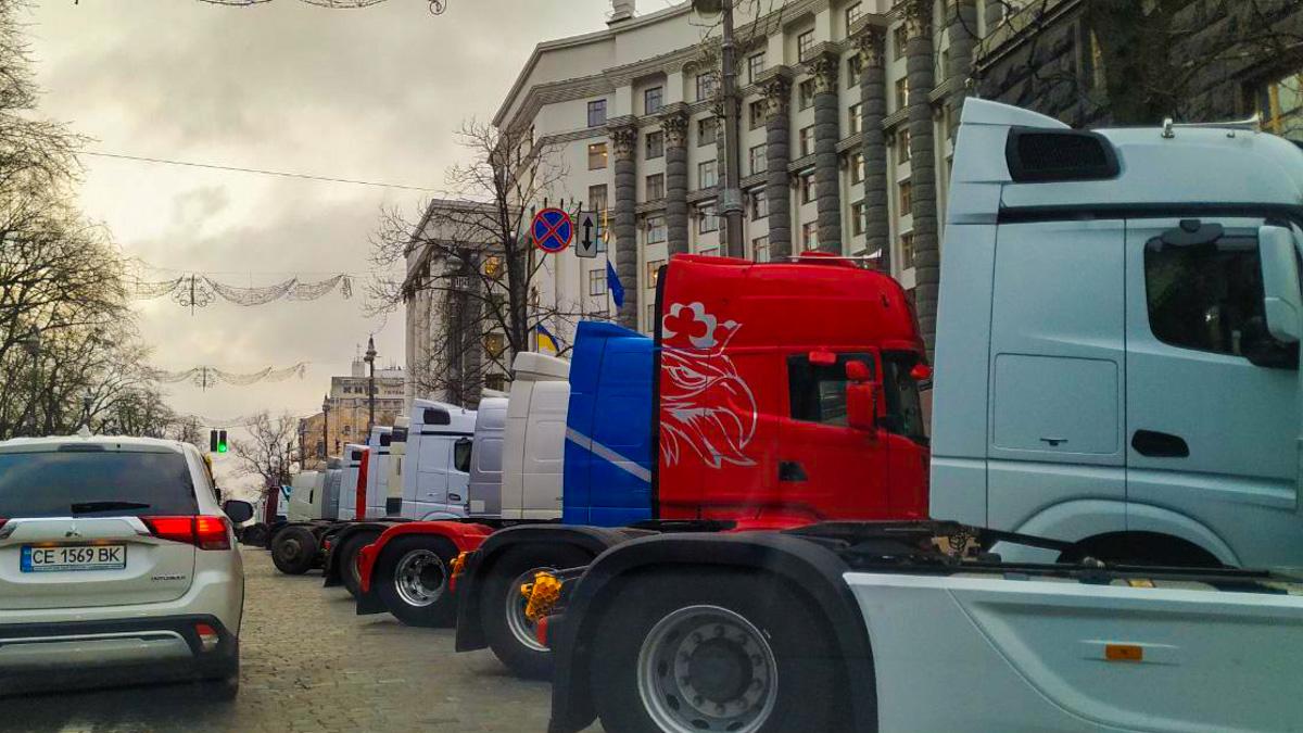 Під Кабміном протестують перевізники: на акцію приїхали десятки фур (відео)