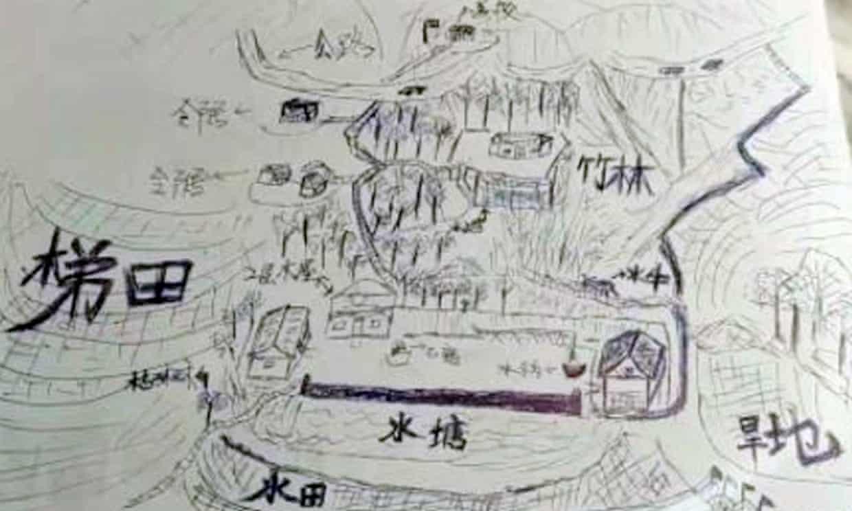 Вже дорослим Лі Цзіньвей намалював мапу зі школою, бамбуковим лісом та ставком. У 2020 році 24 грудня він виклав малюнок у соцмережі Douyin (китайський аналог TikTok — ред.). У відео Лі сказав, що шукає свій дім, але не знає назви села чи адресу будинку.