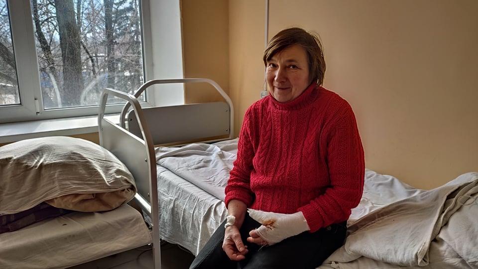 «І тут біля магазина снаряд влучив у мене. Дорога до магазину у крові вся. Влучило на порозі до магазину. Поки чекали «швидку» калюжа крові натекла», — розповіла поранена Валентина Гордєєва.