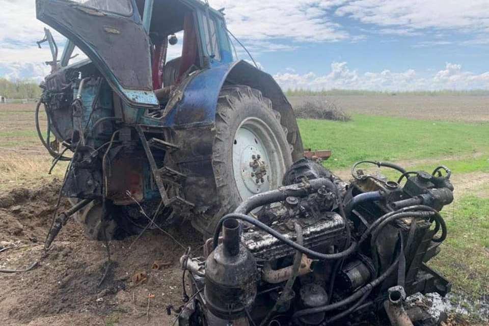 Фото: поліція Київської областіВ селі Маковище чоловік виїхав трактором на польову дорогу, де натрапив на сховану в землі протитанкову міну, яку лишили окупанти. Техніка зазнала серйозних ушкоджень, водій не постраждав.