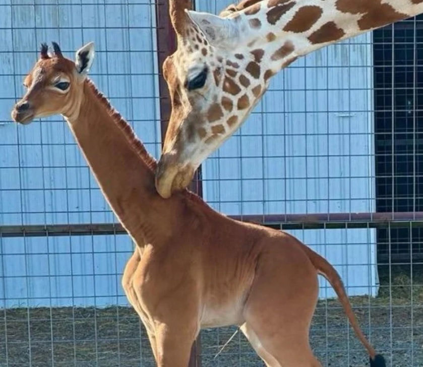 У зоопарку штату Теннессі народився рідкісний жираф, який не має плям. Фахівці вважають, що це єдиний у світі однотонний сітчастий жираф.