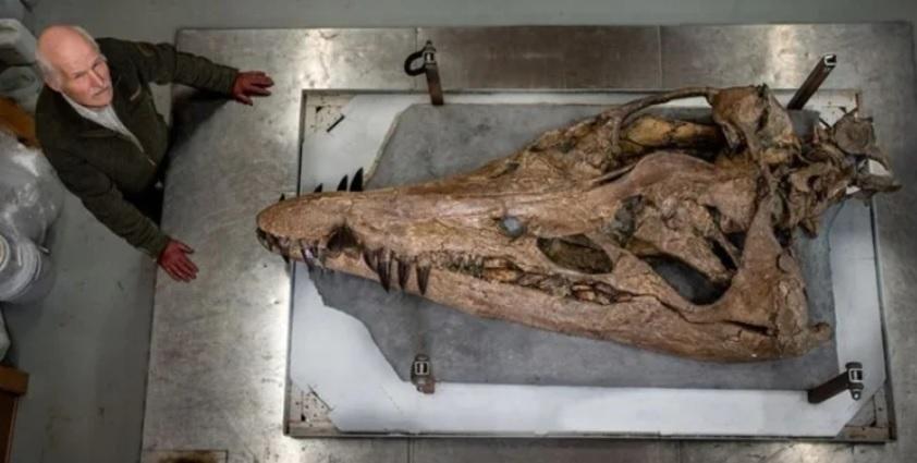 Фото: ВВСУ Великій Британії, у графстві Дорсет, зі скель узбережжя витягли гігантський череп пліозавра — це величезний динозавр, який населяв океан близько 150 мільйонів років тому. Довжина знайденого скамʼянілого черепа склала два метри, що робить пліозавра одним із найбільших хижаків, які коли-небудь жили на планеті.