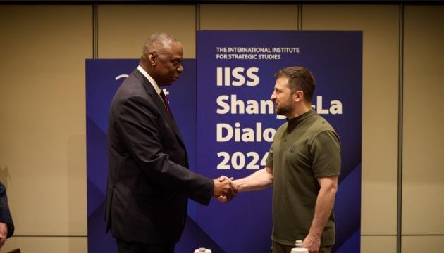 Президент України Володимир Зеленський зустрівся з міністром оборони США Ллойдом Остіном на полях саміту «Діалог Шангрі-Ла» у Сінгапурі.