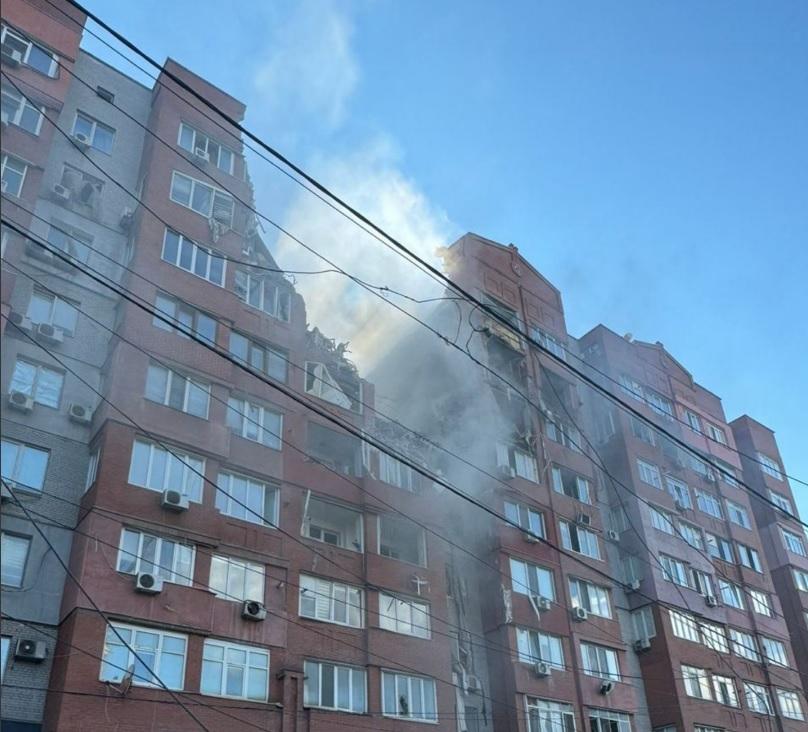 У квартирах будинку та автівках навколо місця атаки, ймовірно, заблоковані люди. В одному з під’їздів сталося займання.