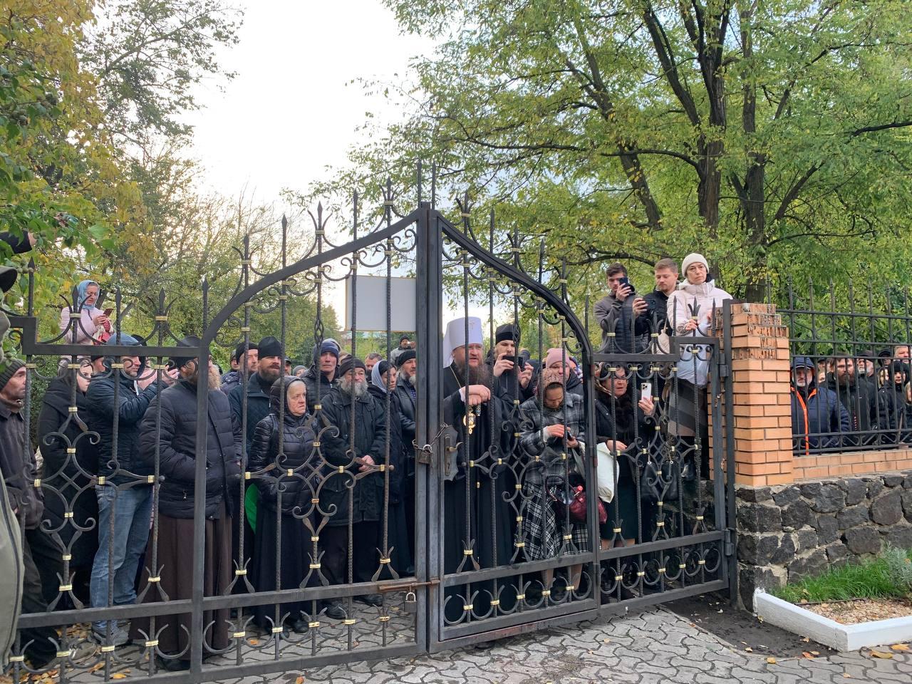 Відомо, що віряни «УПЦ МП» та митрополит Феодосій зачинилися у храмі і нікого туди не пускають.