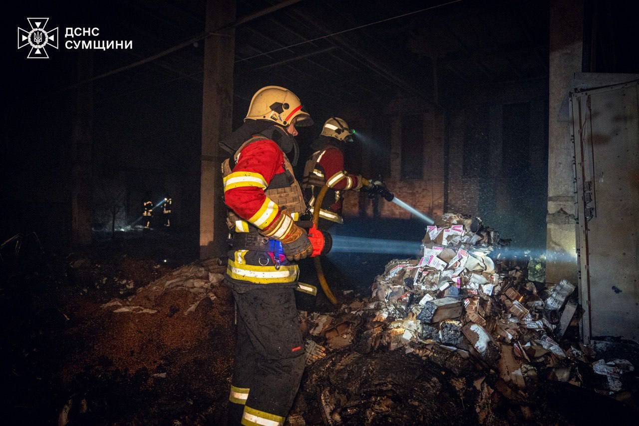 Через влучання «шахедів» у Сумах знищений термінал «Нової пошти». Понад 2,5 тисячі посилок, які перебували на території термінала, згоріли.