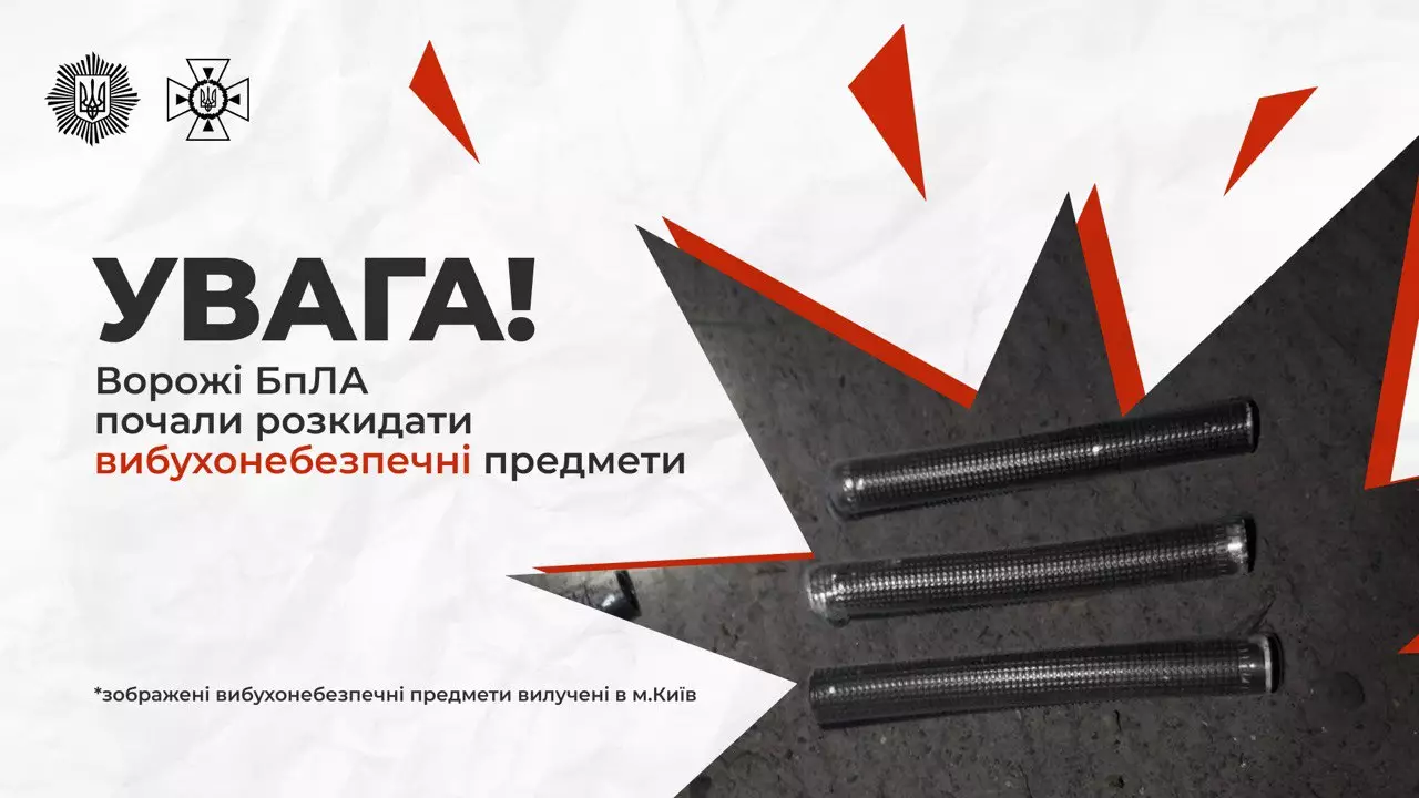 Там розповіли, що ворог може використовувати їх для ураження будь-якого з регіонів країни: «Ризик надзвичайно високий й через те, що час вибуху таких боєприпасів невідомий. Уважно подивіться на фото — так можуть виглядати ці вибухонебезпечні предмети. Обов’язково попередьте близьких. Якщо ви побачили підозрілий предмет, не підходьте, не чіпайте, телефонуйте 101, 102 чи 112».