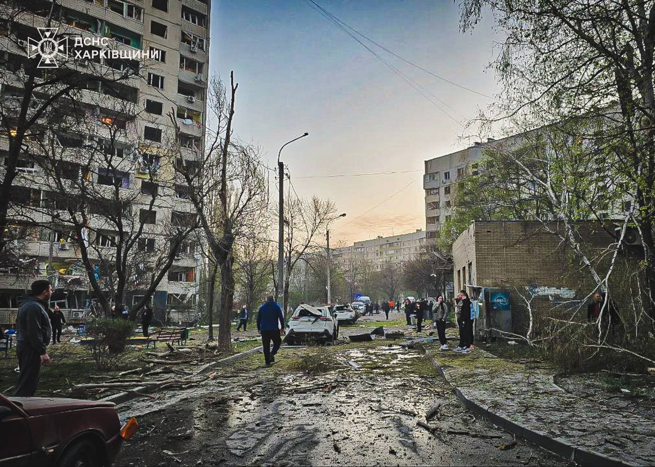 «Вранці ворог завдав ракетних ударів по Слов’янському району міста Харкова, безпосередньо одне з влучань було одразу було біля житлової забудови, це звичайний мікрорайон, де розташовані багатоповерхові житлові будинки. Поруч припарковані безліч легкових авто, знаходиться навчальний заклад, торговельні об’єкти.