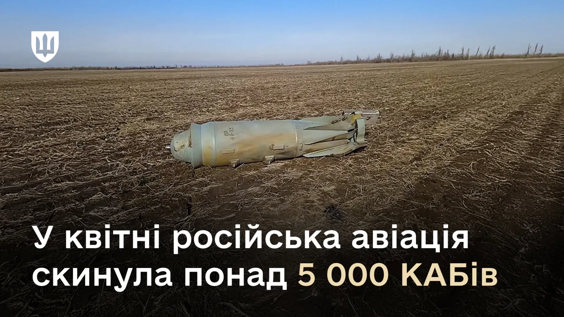 У квітні росавіація скинула на позиції підрозділів Сил оборони та прифронтові населені пункти понад 5 000 КАБів.