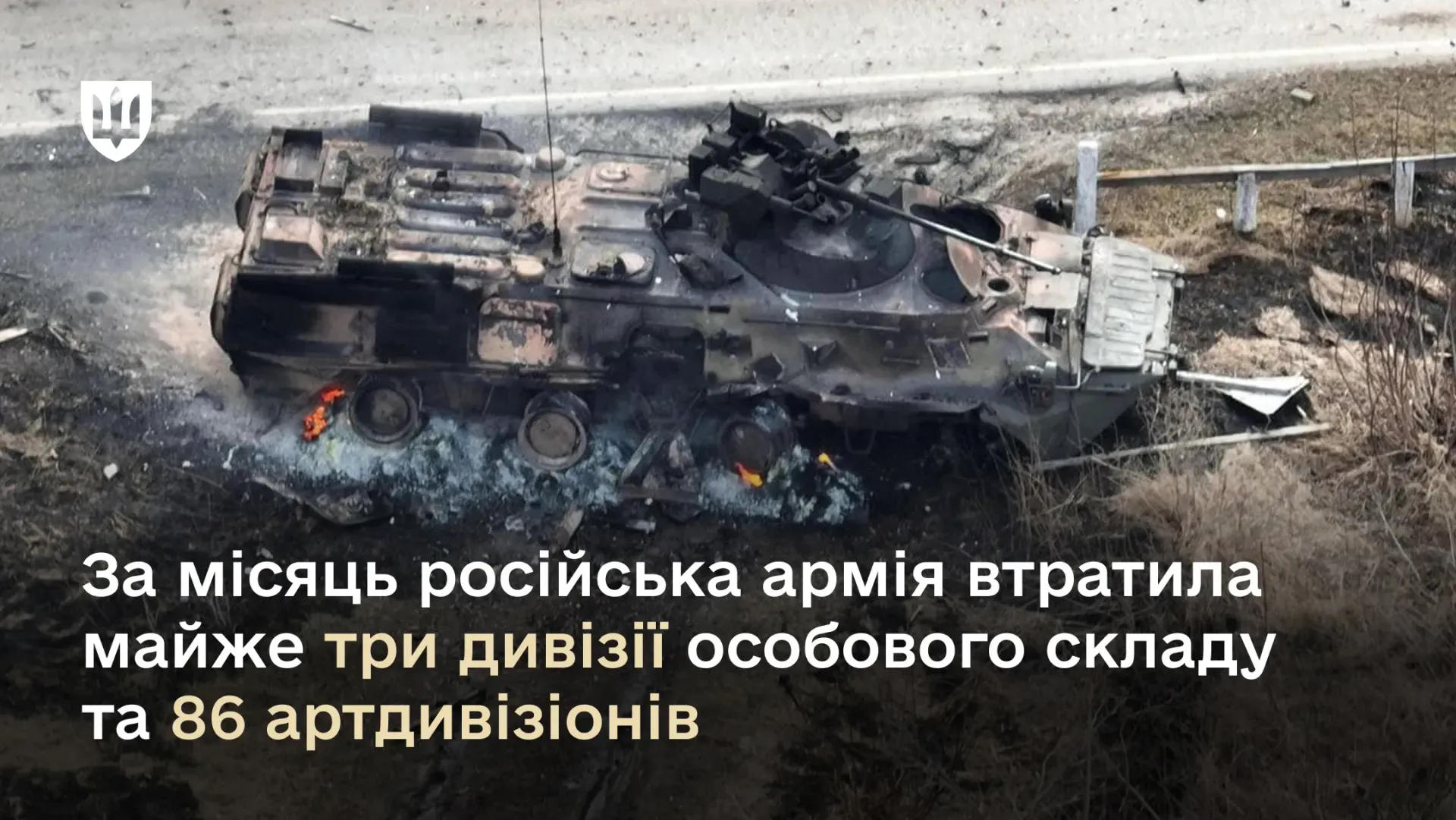За інформацією Генштабу, у квітні безповоротні та санітарні втрати російської армії склали 35 010 осіб. Такої кількості живої сили вистачило б щоб укомплектувати майже три мотострілецькі дивізії.