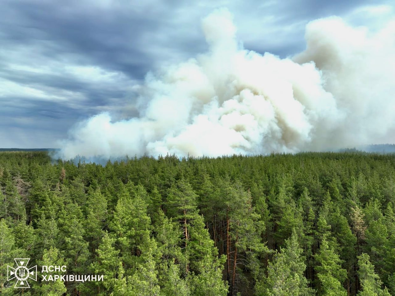 У Харківській області рятувальники гасять 11 лісових пожеж, п’ять з яких пов’язані з російськими атаками.