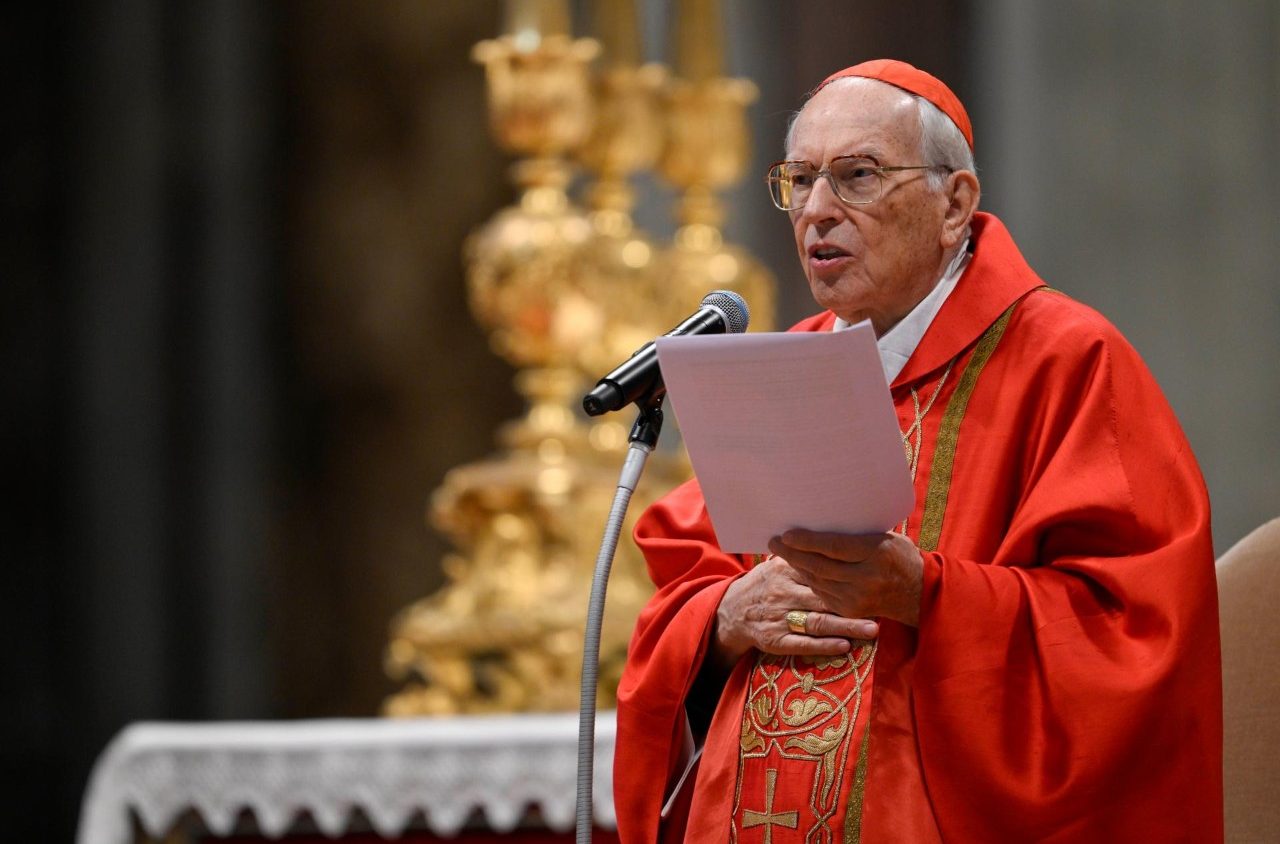 Кардинал Джованні Баттіста Ре, Декан Колегії кардиналів, виголошує проповідь на месі, яка передує конклаву/Фото: Vatican Media