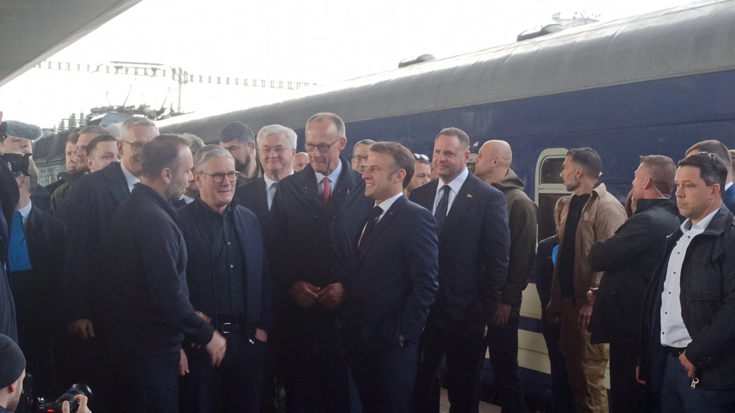 Європейських лідерів зустріли міністр закордонних справ України Андрій Сибіга та голова Офісу президента Андрій Єрмак. Також був присутній голова правління Укрзалізниці Олександр Перцовський.