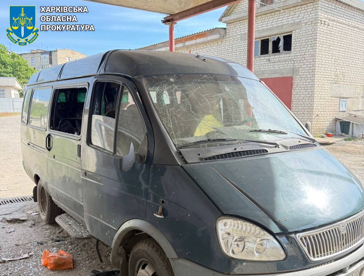 Пошкоджений автомобіль куп’янських комунальників після російського обстрілу/Фото: Харківська обласна прокуратура