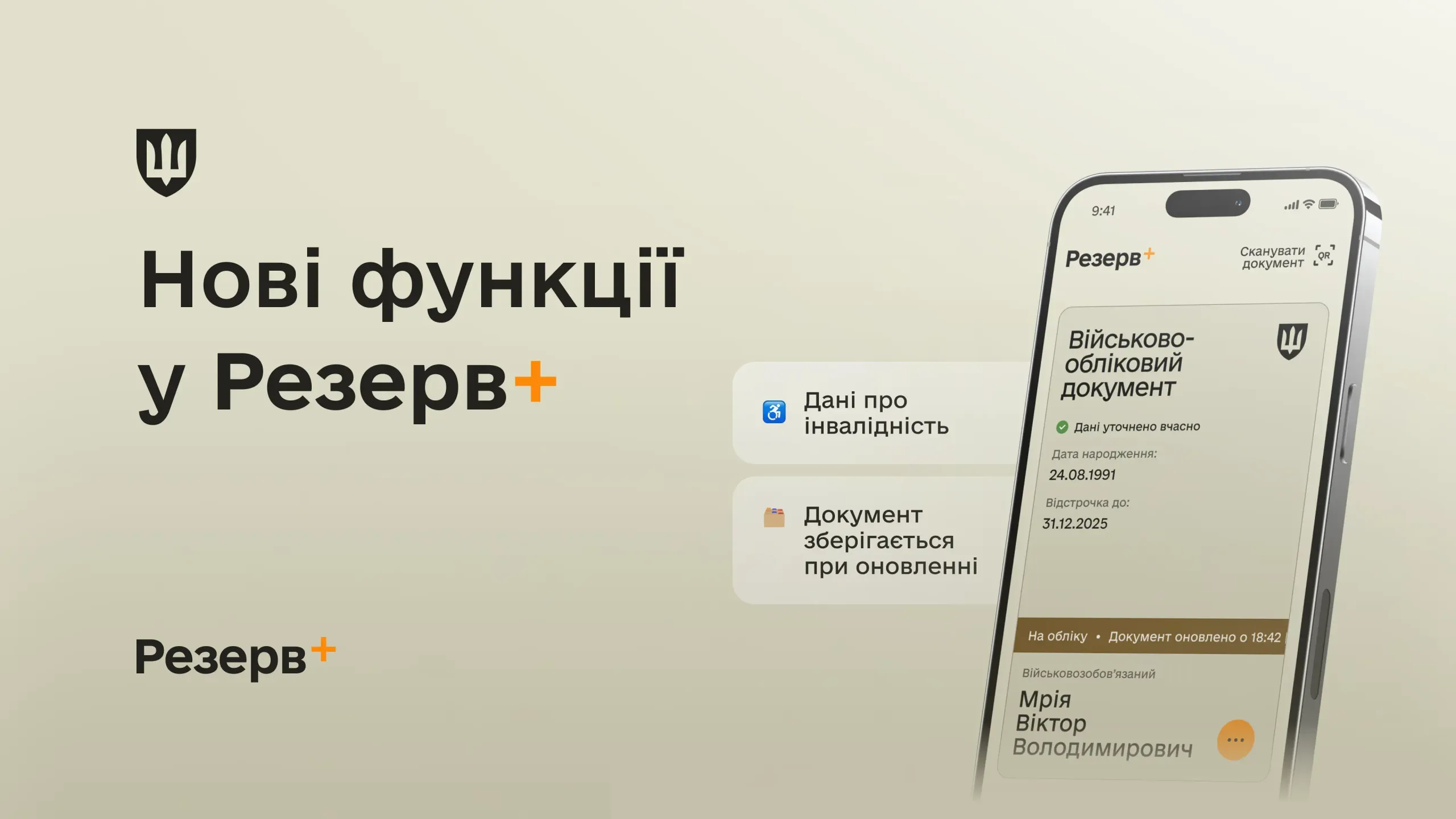 В оновленні застосунку «Резерв+» додалися два нових сервіси — відображення даних про інвалідність та збереження попередньої версії військово-облікового документа під час його оновлення.