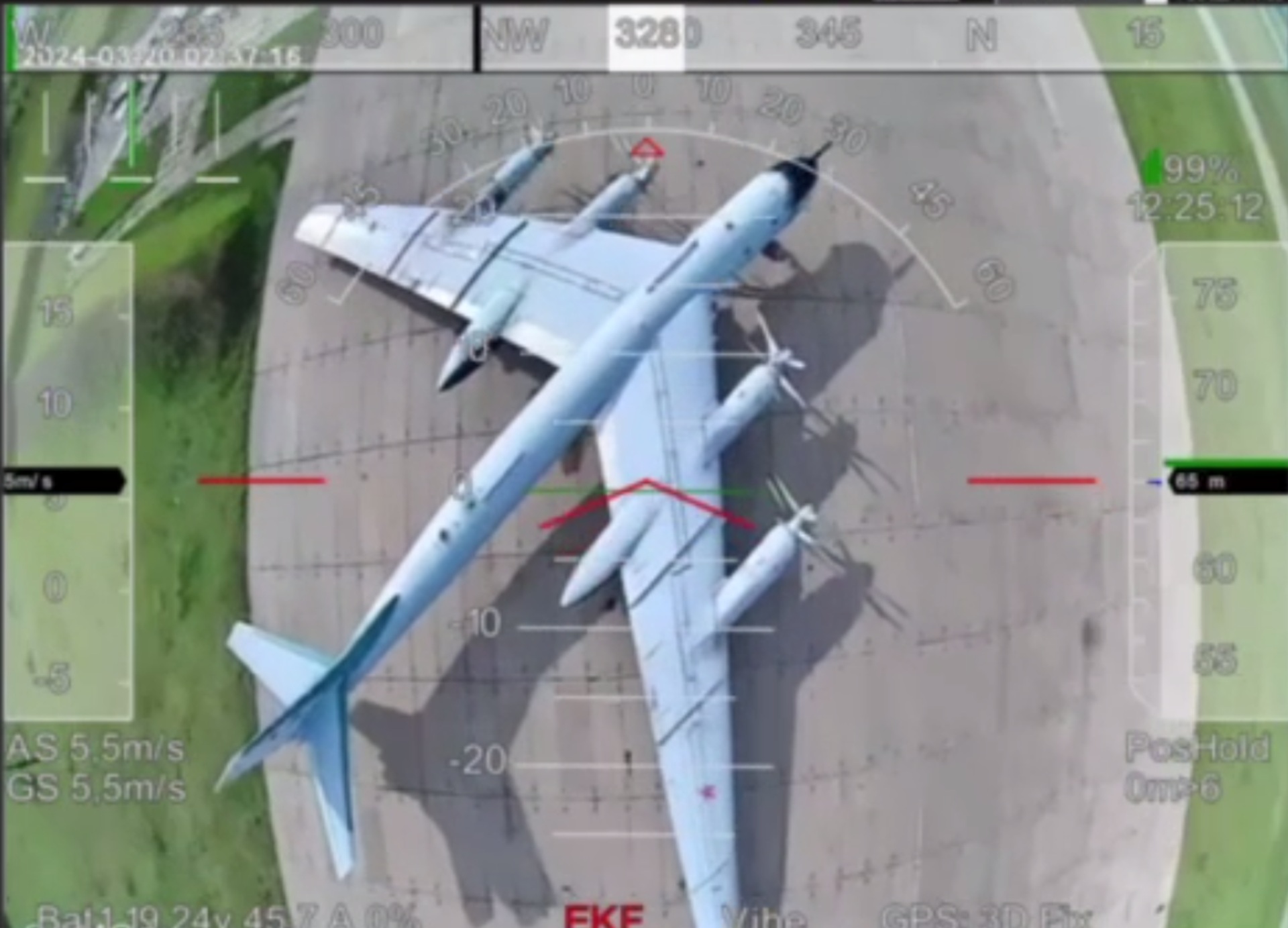 Стратегічний бомбардувальник Ту-95 в прицілі FPV дрона/Фото: Сскриншот з відео