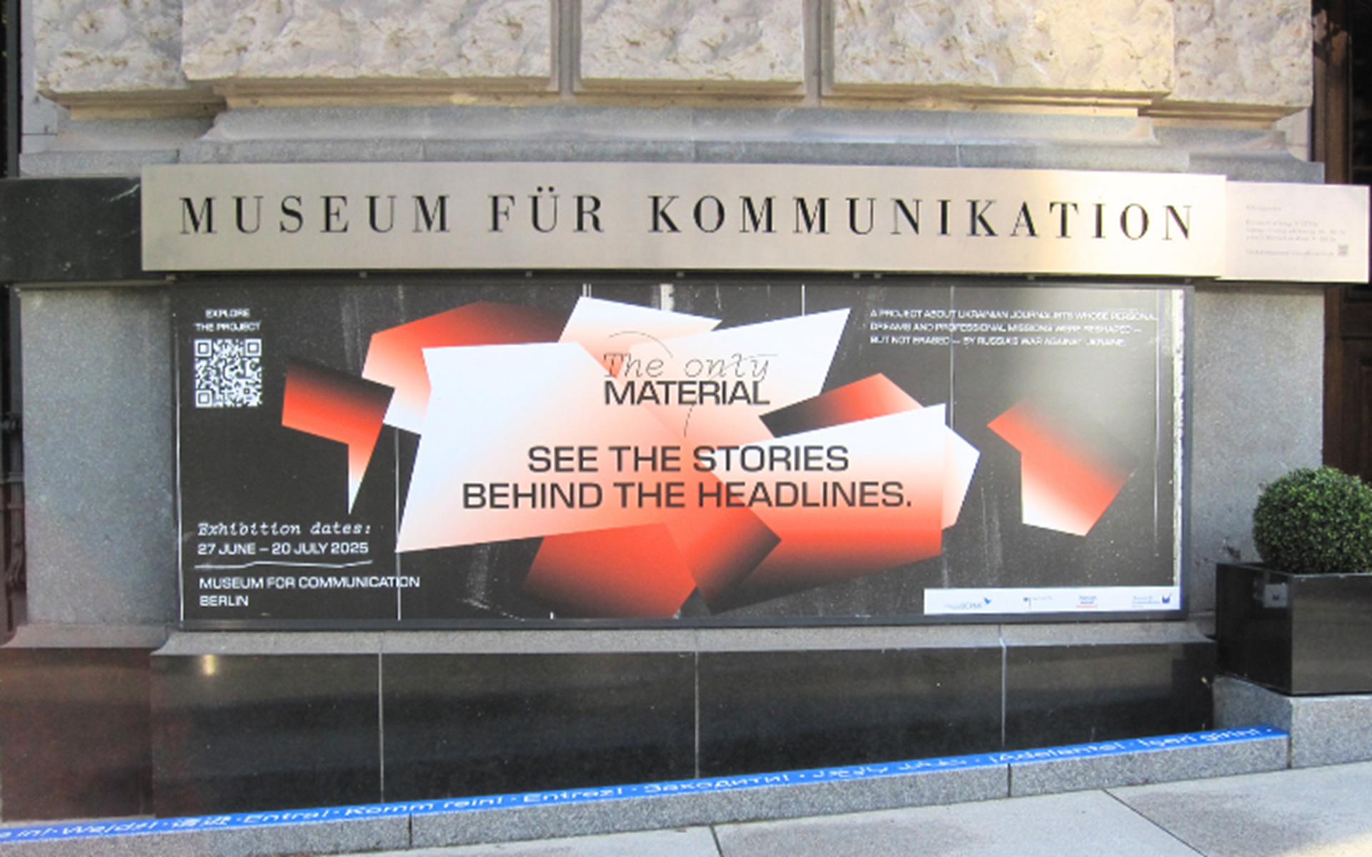 У Берліні, в Музеї комунікацій, з 27 червня працює виставка The Only Material, присвячена роботі українських журналістів під час війни. Однією з її учасниць є головна редакторка Громадського радіо Вікторія Єрмолаєва.