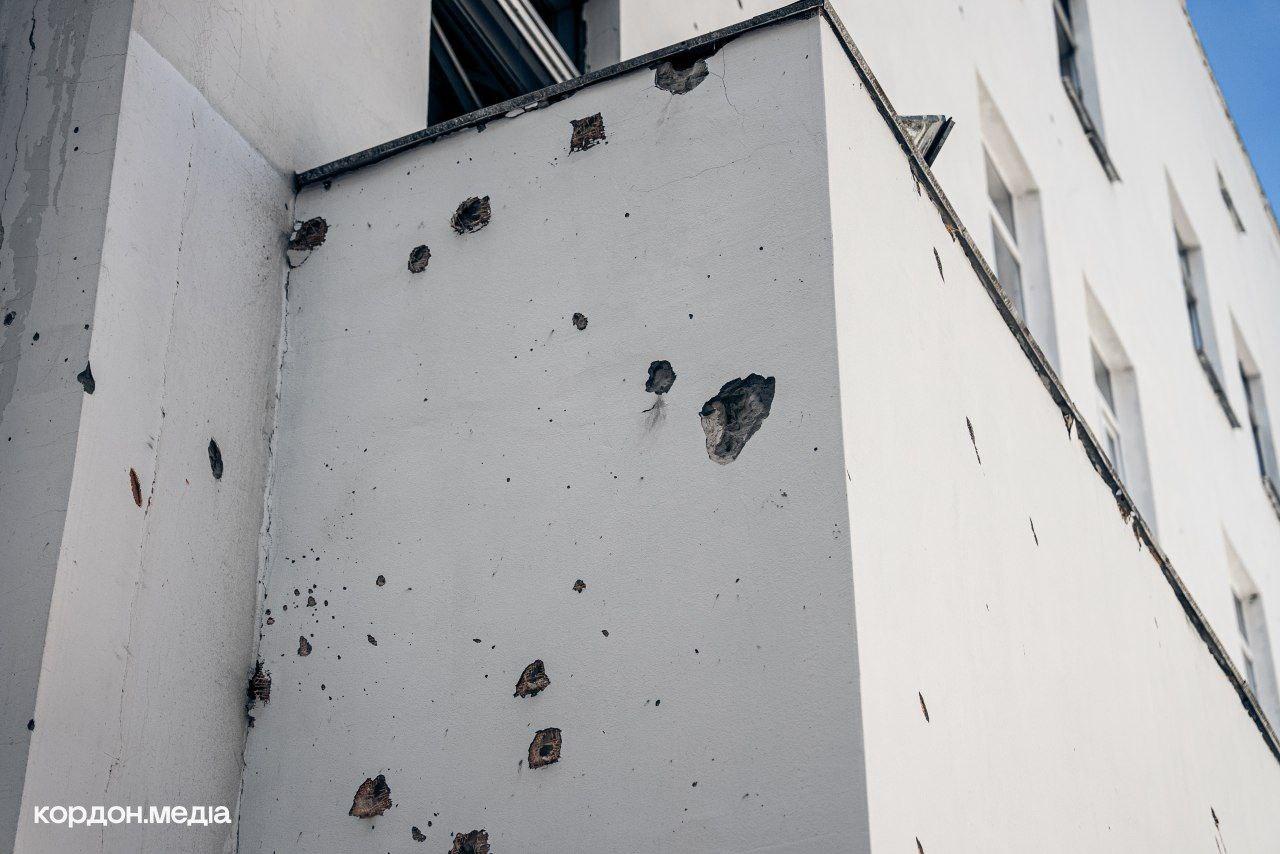 Будівля університету зі слідами уламків/Фото: Кордон.МедіаРосіяни вдень у понеділок, 14 липня, атакували дронами Сумський національний аграрний університет.
