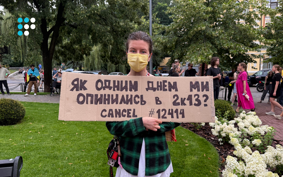 У Києві на площі біля театру імені Івана Франка (неподалік Офісу президента) о 20:00 розпочалася акція протесту проти законопроєкту №12414 щодо НАБУ та САП, ухваленого Верховною Радою 22 липня.