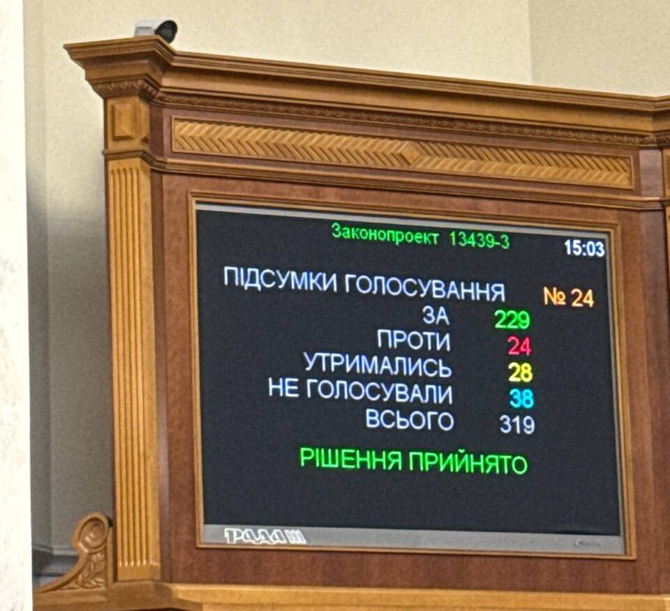 За відповідний законопроєкт №13439-3 проголосували 229 парламентарів.