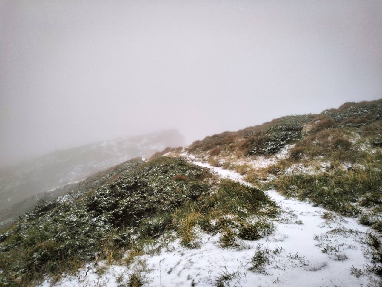 Як сказано в повідомленні, 24 серпня на горі Піп Іван Чорногірський рятувальники зафіксували перший цьогорічний снігопад. На вершині — хмарно, всього +1°C і вітер.