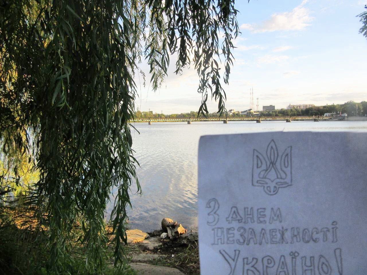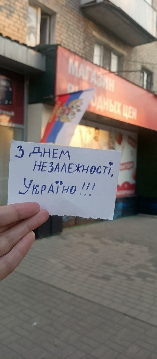 «Севастополь, Сімферополь, Ялта, Євпаторія, Бахчисарай, Саки, Донецьк, Маріуполь, Жданівка. Луганськ, Алчевськ, Вовчанськ, Довжанськ, Лутугине. Мелітополь, Енергодар, Бердянськ Скадовськ, Генічеськ, Нова Каховка…вітають з Днем Незалежності України!».