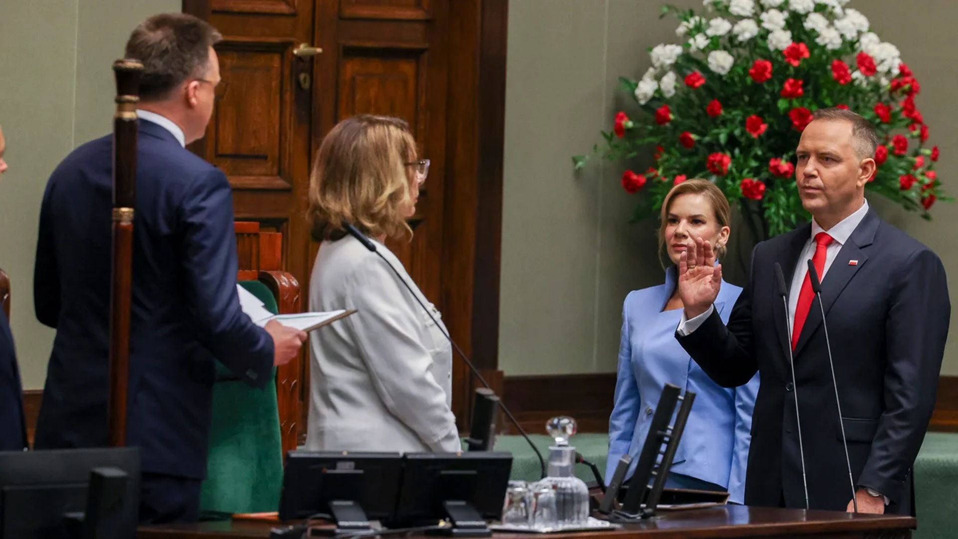 Кароль Навроцький складає присягу президента Польщі/Фото: X / Kancelaria Prezydenta RP
