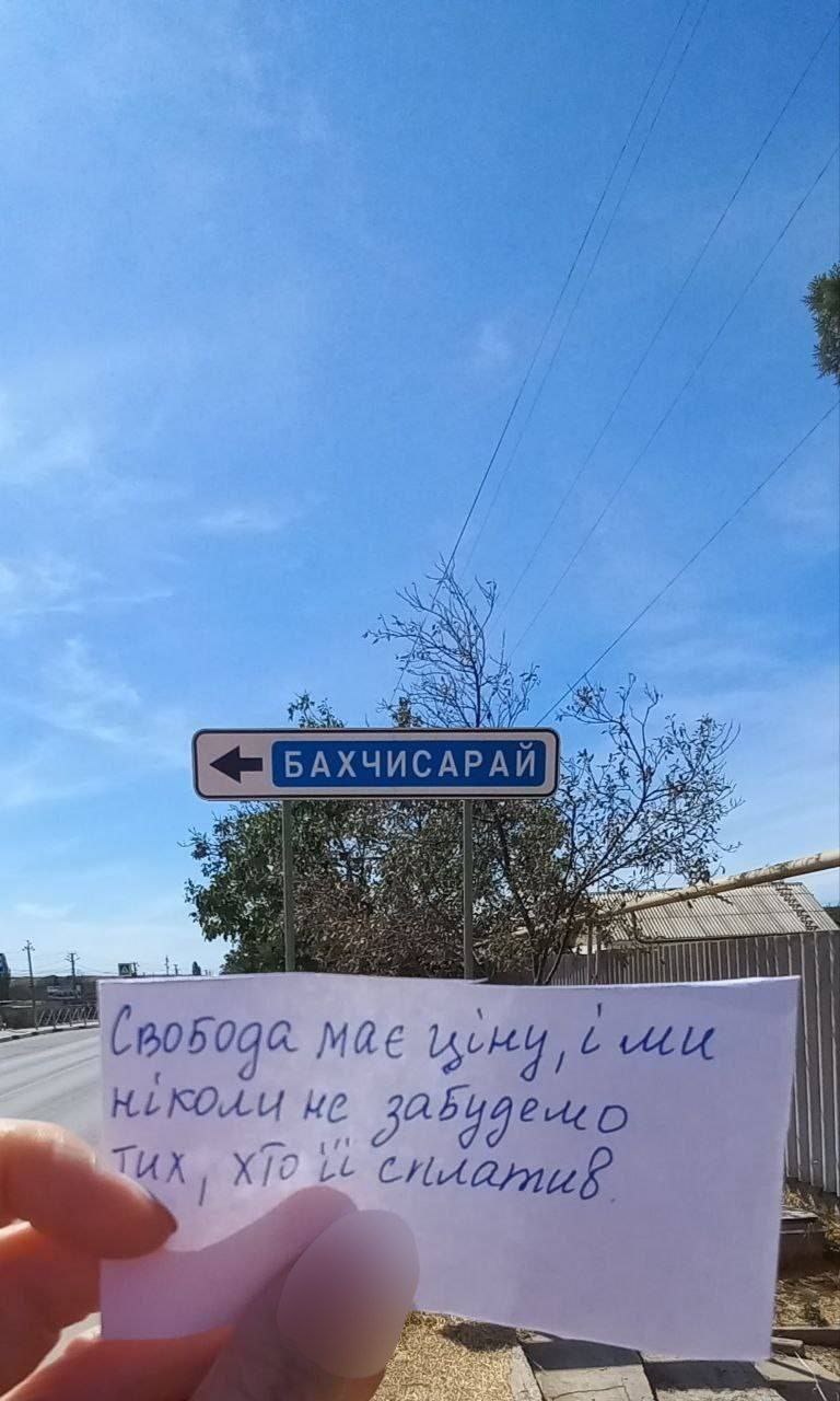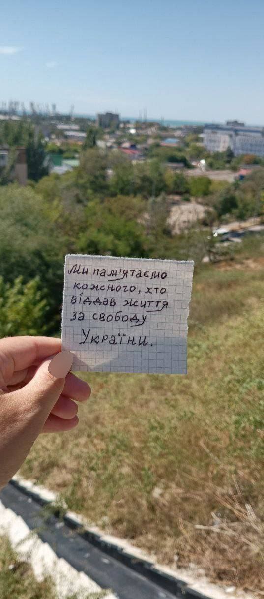 Бердянськ, Луганськ, Маріуполь, Мелітополь, Севастополь, Донецьк і інші окуповані міста пам’ятають та шанують людей, які боролися за нас з вами. Дякуємо кожному, хто боровся і загинув за наше з вами майбутнє».