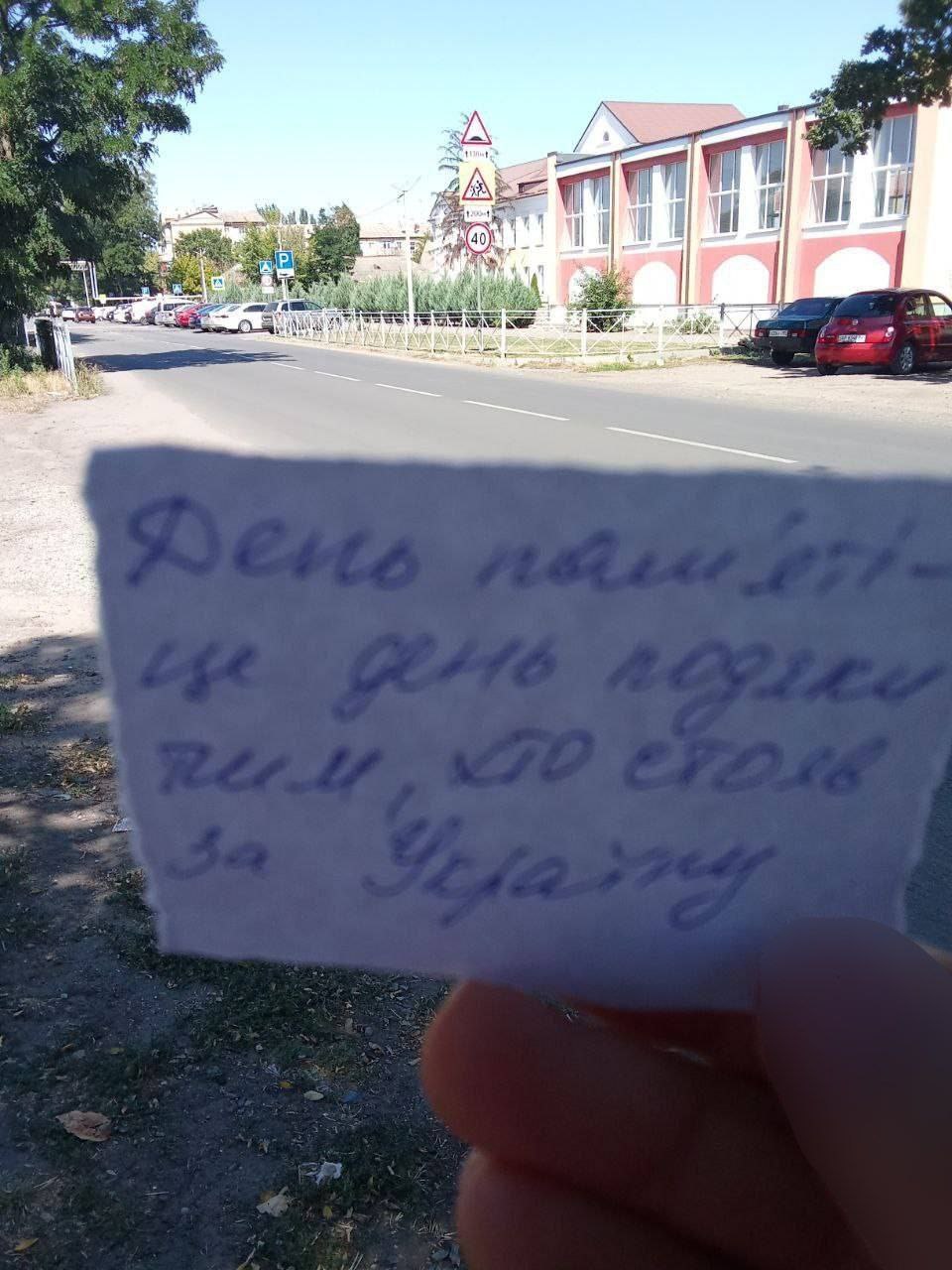 «Українці в окупації памʼятають кожного, хто віддав життя за Незалежність України! Вже котрий рік поспіль, 29 серпня ми вшановуємо військових та добровольців, які загинули, відстоюючи Незалежність. Рух «Жовта Стрічка» доєднується до всеукраїнського дня пам’яті.