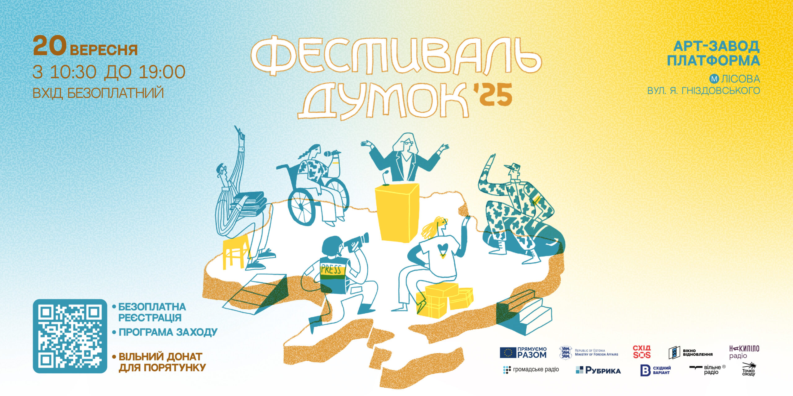 Фестиваль організовує БФ «Схід SOS» за підтримки Міністерства закордонних справ Естонії та в межах проєкту «Підтримка постраждалих від війни вразливих груп населення та жителів віддалених територій України» за фінансової підтримки ЄС. Медіа партнерами фестивалю стали «Східний варіант», «Рубрика», «Вікно відновлення», «Вільне радіо», «Громадське радіо», Радіо «Накипіло» та «Точка сходу».