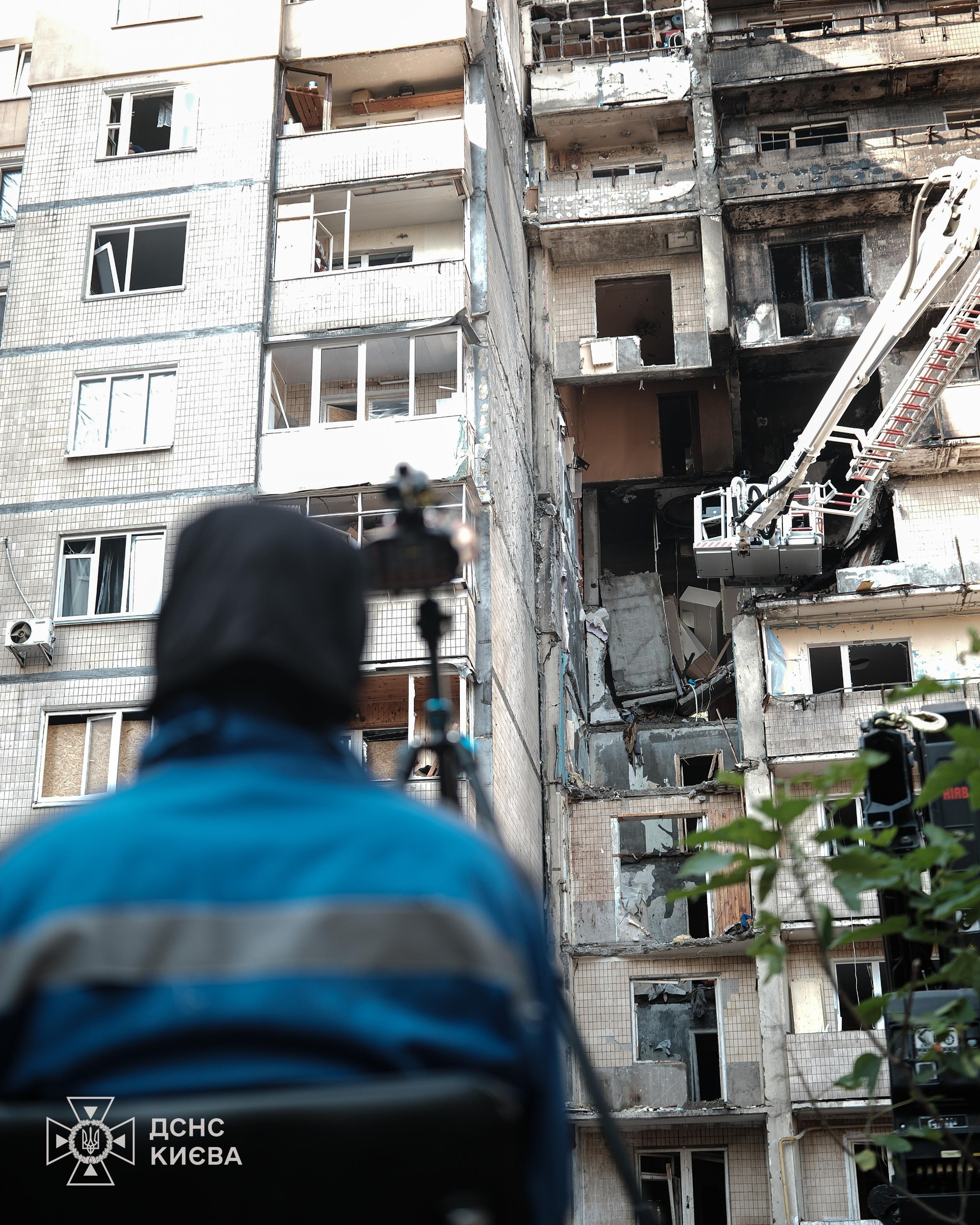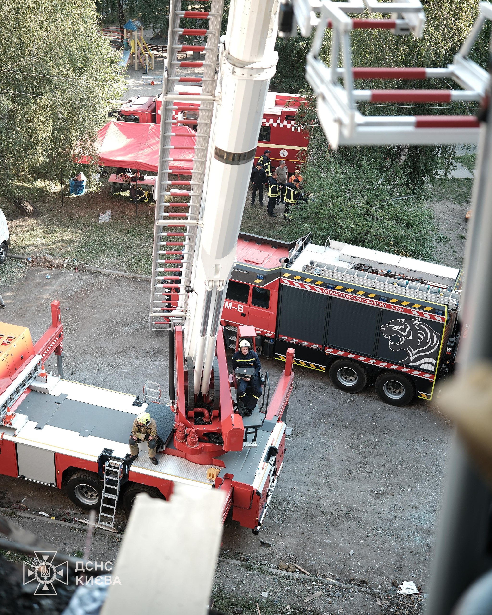 Фото: ДСНСУ Святошинському районі Києва завершили аварійно-рятувальні роботи після атаки Росії 7 вересня.
