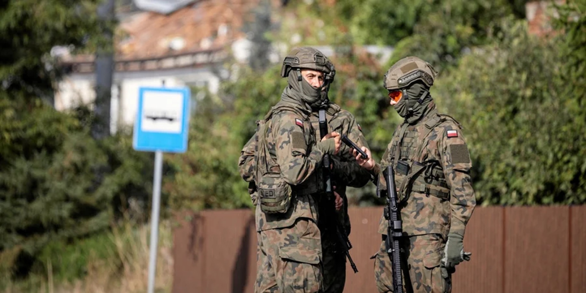 Солдати патрулюють вулицю у населеному пункті Вирики-Полод у Польщі, де уламки російського дрона впали на житловий будинок/Фото: Agencja Wyborcza.pl/Jakub Orzechowski/via REUTERS