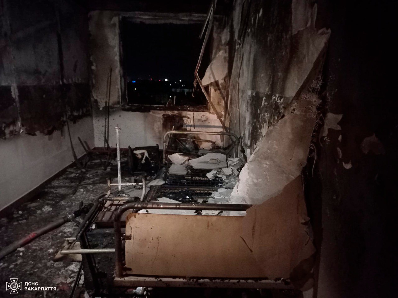 Там зазначили, що 16 вересня о 03:05 до Служби порятунку надійшло повідомлення про пожежу в палаті на п’ятому поверсі Ужгородської міської багатопрофільної клінічної лікарні, що на вулиці Івана Коршинського. На момент прибуття підрозділів ДСНС, персонал лікарні вже вивів пацієнтів у безпечне місце. Загалом з медичного закладу евакуювали 69 осіб.