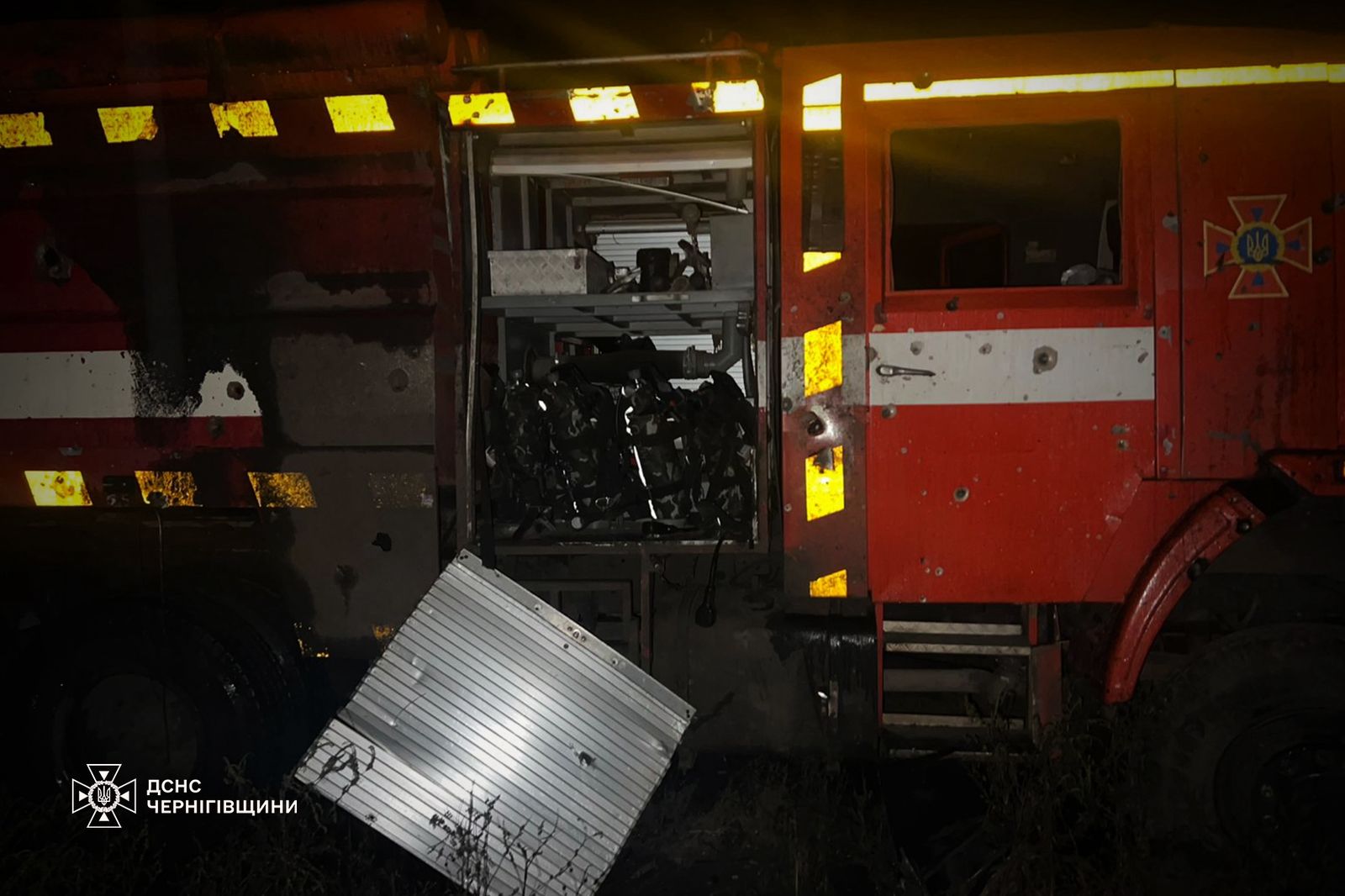 Пожежний автомобіль, по якому вдарили росіяни/Фото: ДСНСМісто Ніжин у Чернігівській області зазнало російського обстрілу в середу, 17 вересня. У четвер, 18 вересня, стало відомо, що внаслідок обстрілу загинув рятувальник.