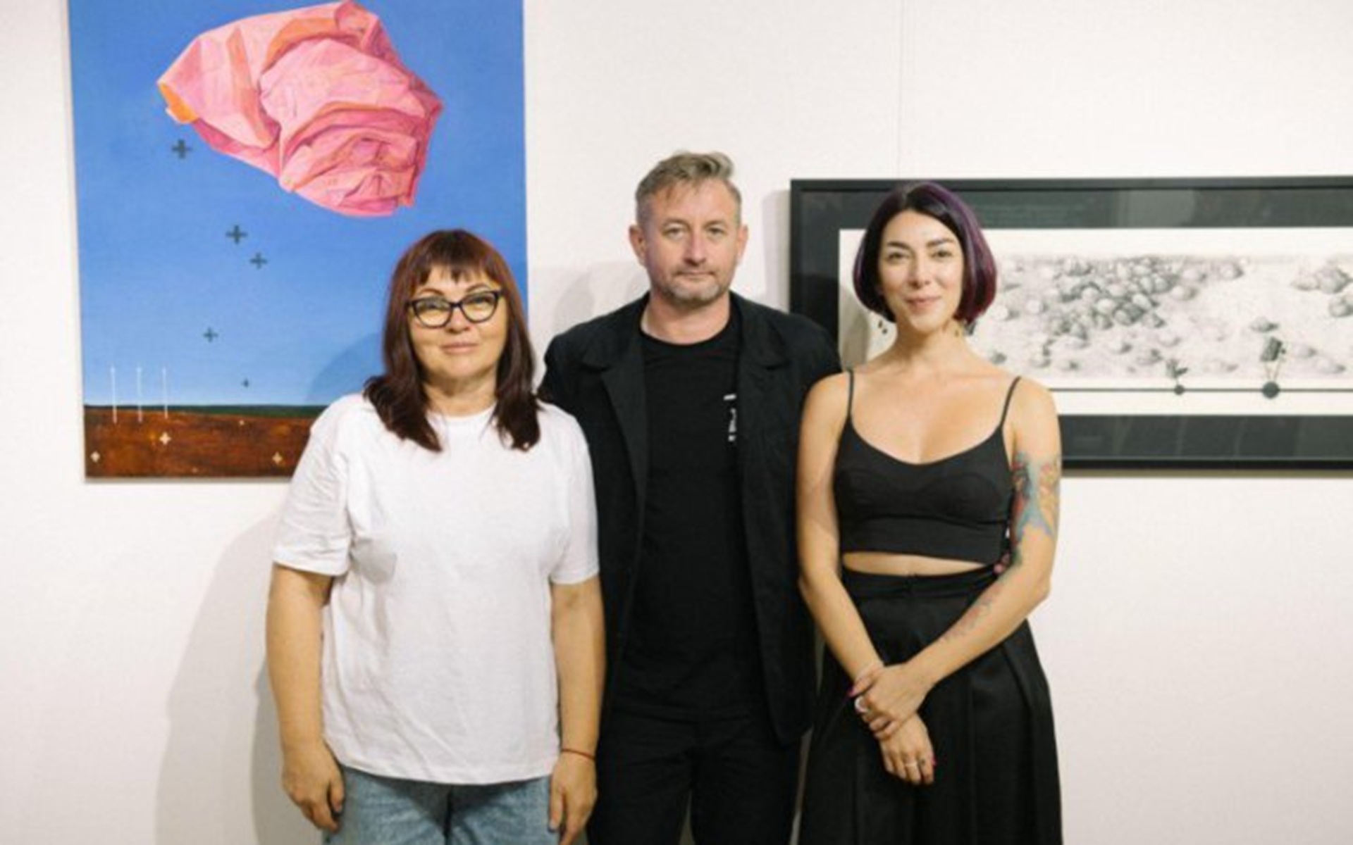 Наталія Іванова, Сергій Жадан, Дар’я Криж на виставці «Мистецтво гідності»/Фото: «Хартія»