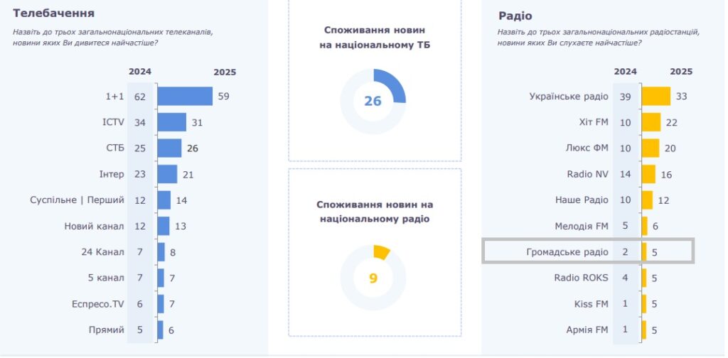 Громадське радіо покращило позиції: «Інтерньюз-Україна» презентував дослідження «Українські медіа: споживання новин і довіра у 2025 році»
