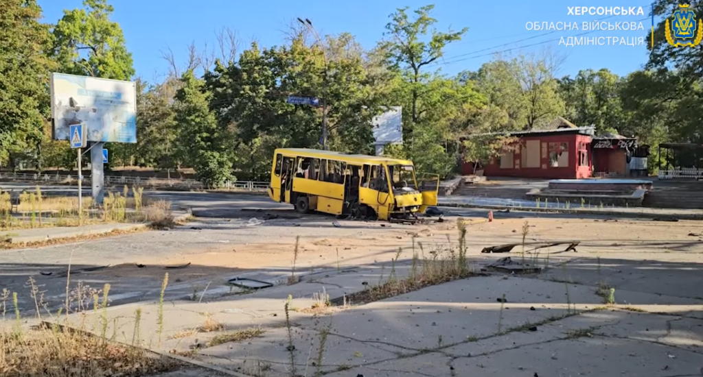 Також, як повідомила Херсонська МВА, у середмісті Херсона зранку під російський артилерійський обстріл потрапила маршрутка, — постраждала жінка.