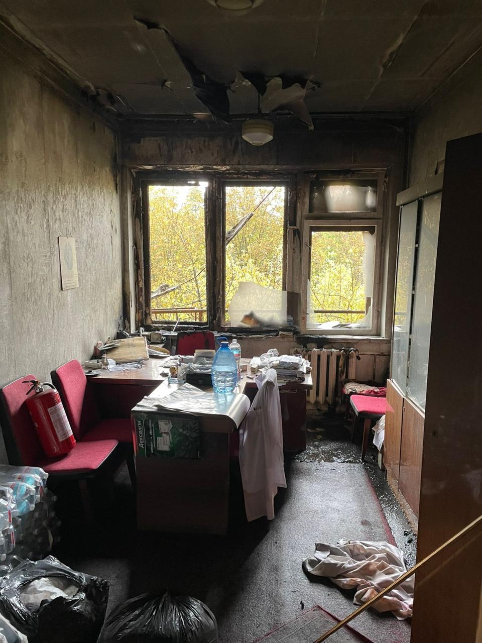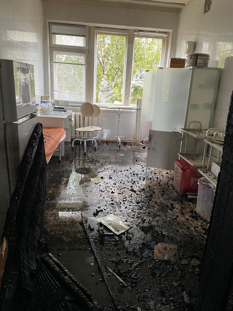 Міністерство охорони здоров’я опублікувало фото з постраждалої будівлі, на яких видно руйнування, до яких призвела пожежа. Там наголосили, що попри обстріли установа продовжує роботу.