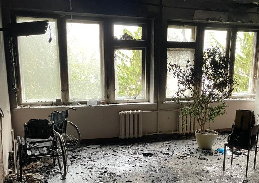Міністерство охорони здоров’я опублікувало фото з постраждалої будівлі, на яких видно руйнування, до яких призвела пожежа. Там наголосили, що попри обстріли установа продовжує роботу.