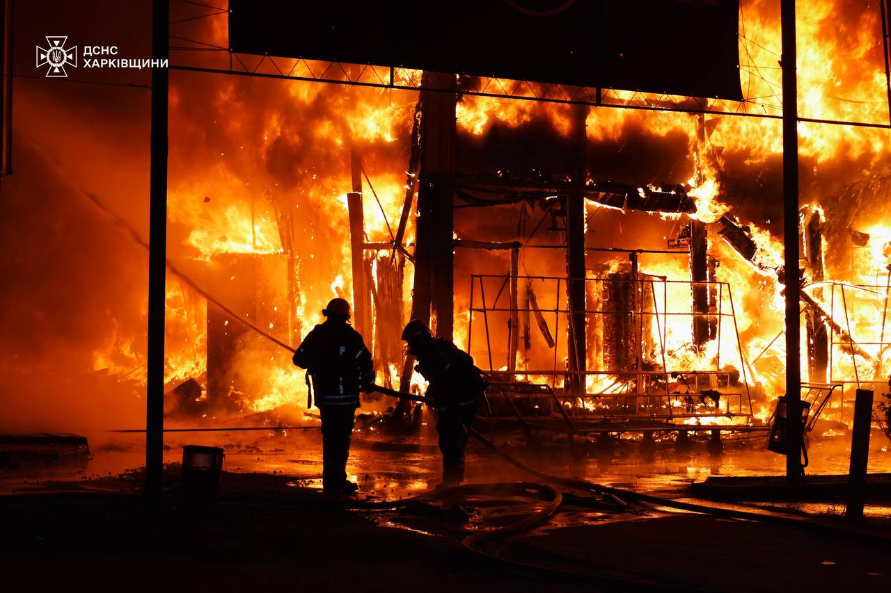 Євген Василенко розповів, що на території ринку в Київському районі міста сталася масштабна пожежа: «Горіли торгівельні павільйони на площі близько 2800 кв. м. Пожежа наразі локалізована, триває повна ліквідація. Інші осередки займань вже повністю ліквідовані. Це неподалік ринку влучання було у житловий будинок, безпосередньо в сам житловий будинок, який був зруйнований. Пошкоджені, поруч розташовані, житлові будівлі. Сталася пожежа, яку рятувальники оперативно ліквідували».