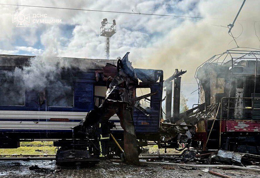 Про це повідомив начальник Сумської обласної військової адміністрації Олег Григоров. У відео він наголосив, що ворожа атака була прицільною по цивільному об’єкту: «У той момент там перебували десятки людей, тривала посадка на потяги».