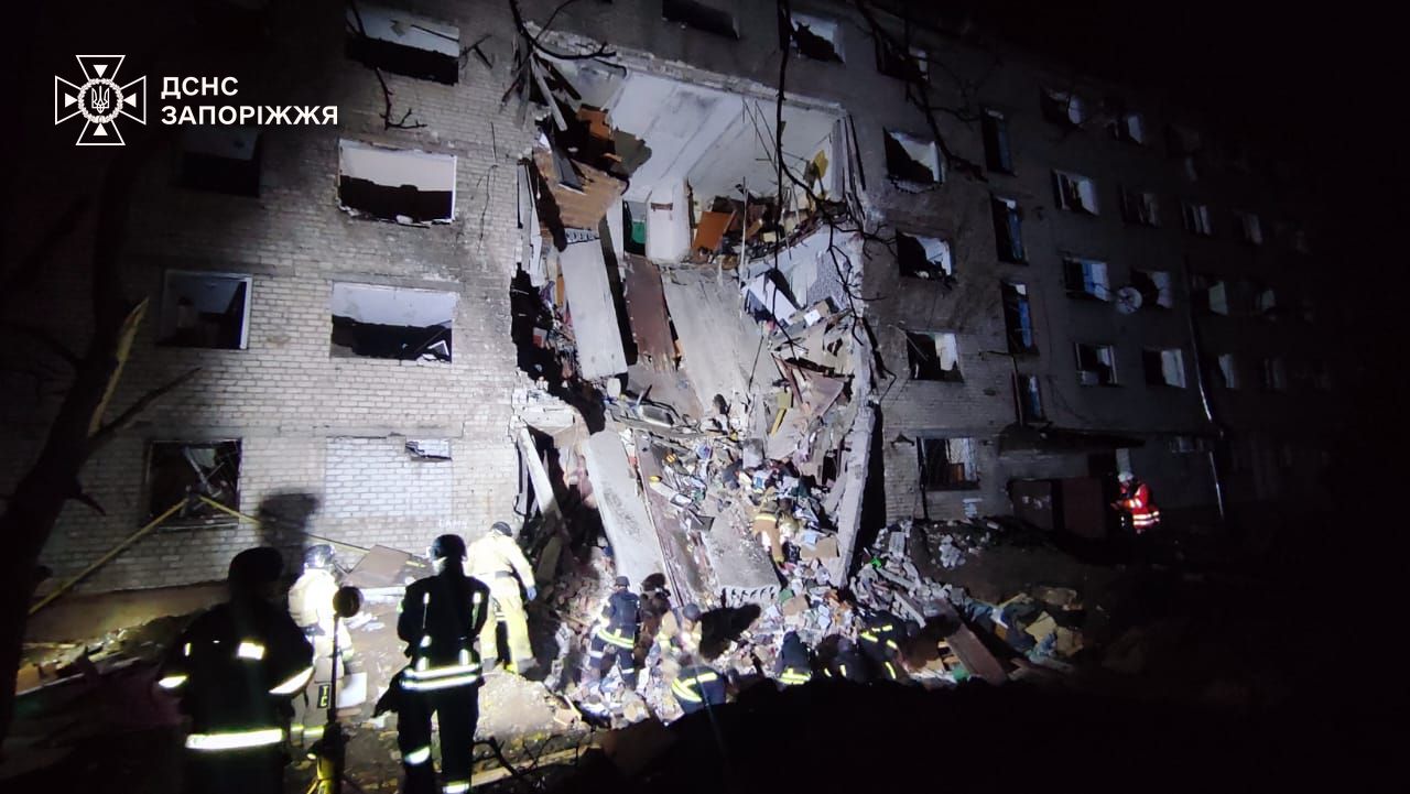 Уночі російські окупанти масовано атакували Запоріжжя. Ворог бив по місту ракетами та БпЛА. Наразі відомо про 2 загиблих та щонайменше 15 постраждалих внаслідок атаки.