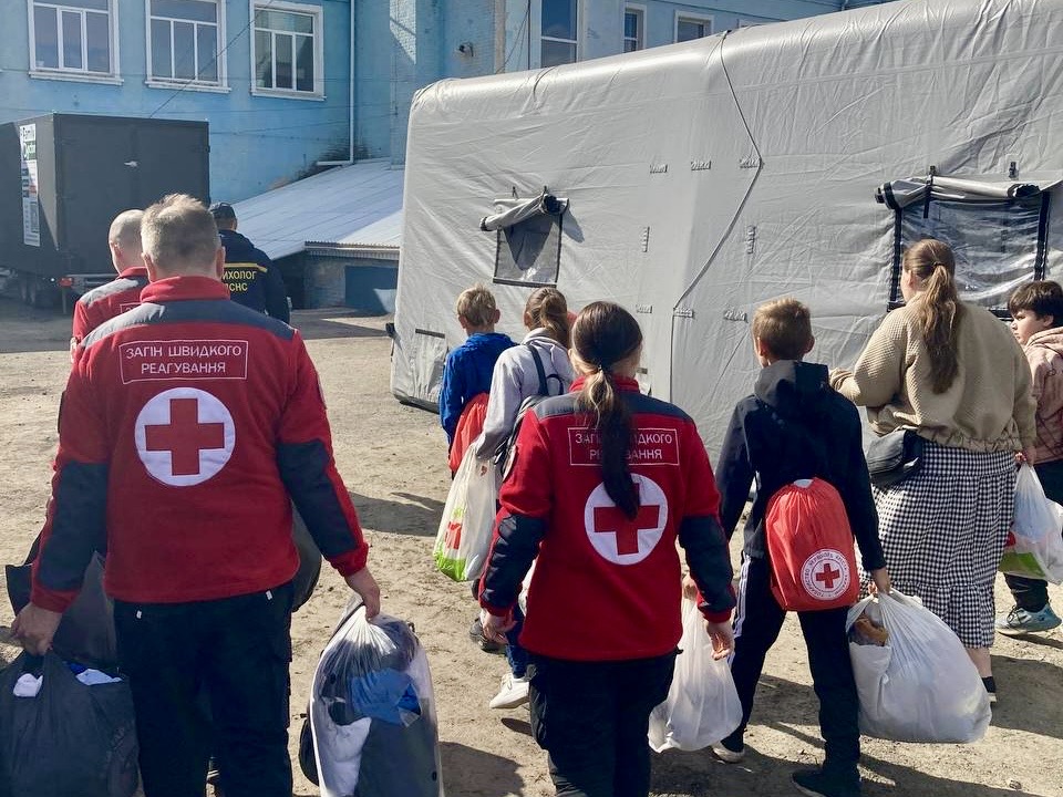 Евакуація із прифронтових районів Дніпропетровської області/Фото: Червоний Хрест